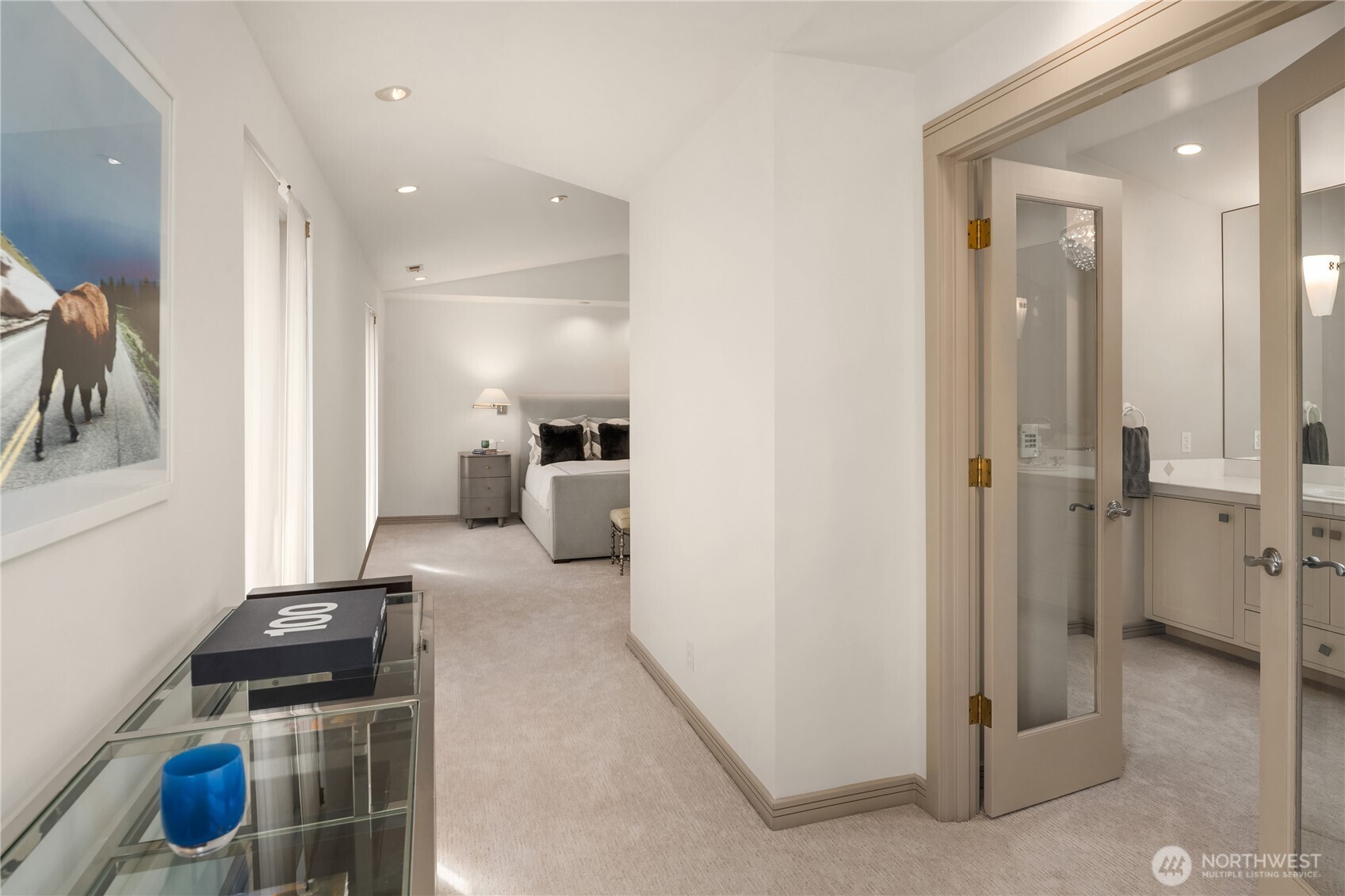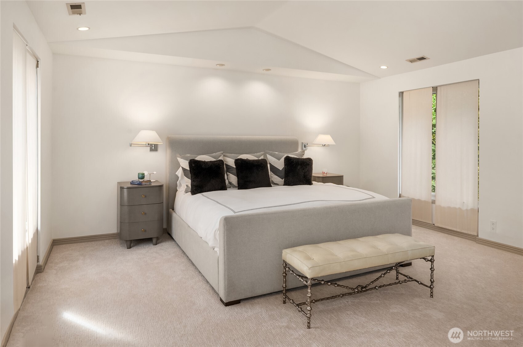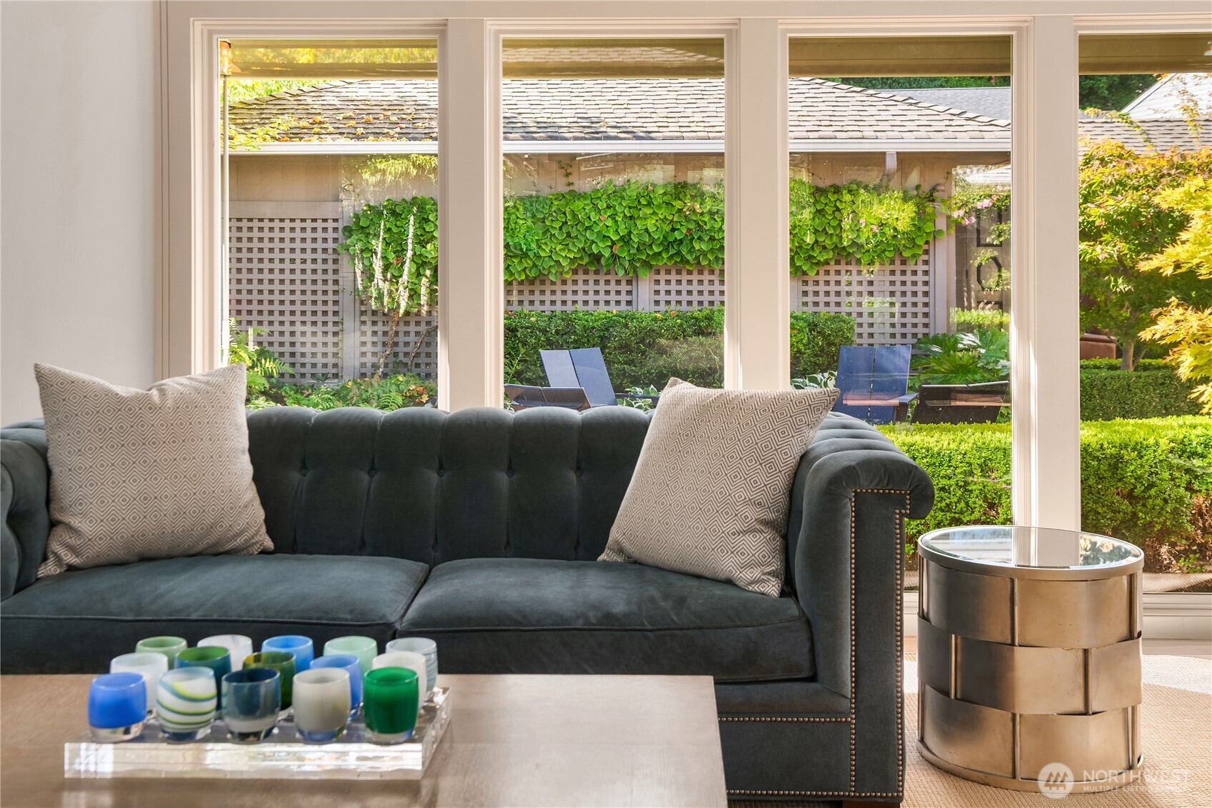 Located in the coveted Broadmoor neighborhood, this refined home captures California-style living with seamless indoor-outdoor flow. The main level features a light filled living room with vaulted ceilings and walls of glass connecting the outdoors, and a cozy den. A generous main-floor master suite offers comfort and ease, while a spacious second upstairs suite adds flexibility. Two private, sun-filled courtyards extend the living space--one with a striking outdoor fireplace. The finished lower level includes ample storage and a full laundry room. A generous two-car garage completes this exceptional home. Just steps from Madison Park's shops and restaurants.