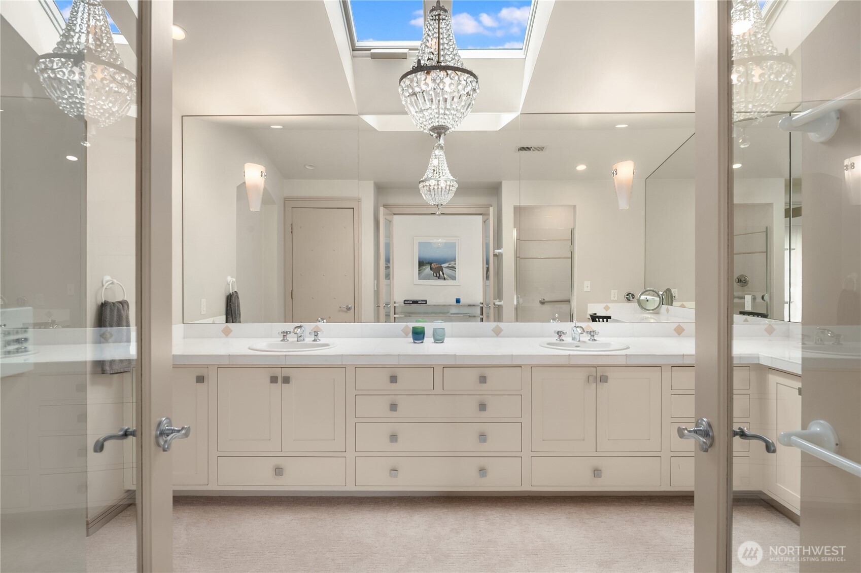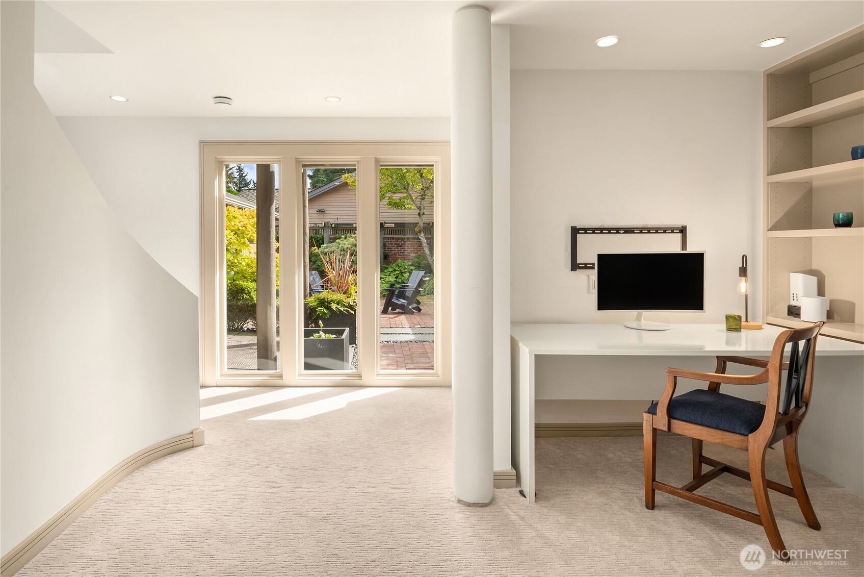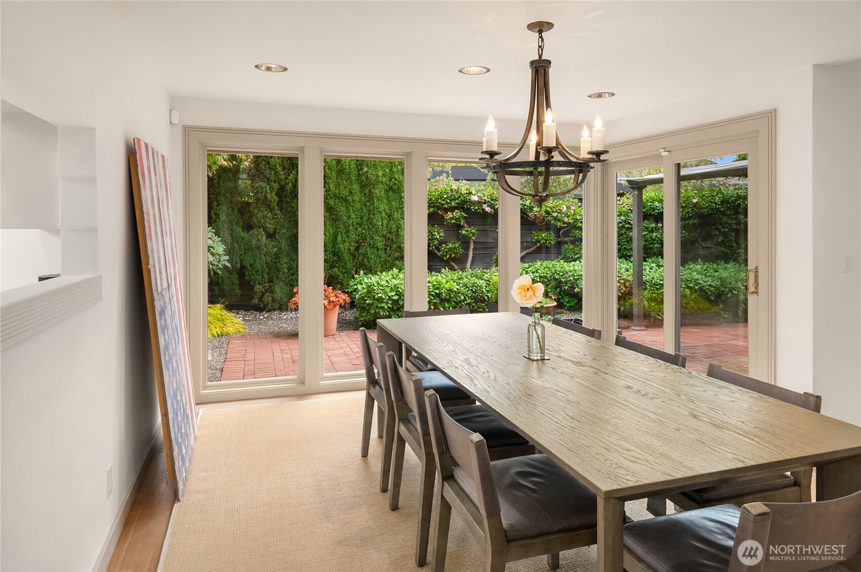 Located in the coveted Broadmoor neighborhood, this refined home captures California-style living with seamless indoor-outdoor flow. The main level features a light filled living room with vaulted ceilings and walls of glass connecting the outdoors, and a cozy den. A generous main-floor master suite offers comfort and ease, while a spacious second upstairs suite adds flexibility. Two private, sun-filled courtyards extend the living space--one with a striking outdoor fireplace. The finished lower level includes ample storage and a full laundry room. A generous two-car garage completes this exceptional home. Just steps from Madison Park's shops and restaurants.